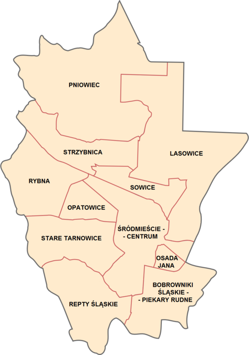 W czasie II wojny światowej nazistowska administracja zmieniła nazwę osady na historyczne „Kraftfelde”. Po wojnie, w latach 1954–1961, Opatowice wchodziły w skład gromady Rybna, a od 1975 roku są jedną z dzielnic Tarnowskich Gór.) – tereny położone na północ od drogi prowadzącej z Tarnowskich Gór do Strzybnicy, nad rzeką Stołą. Obecnie należą one do dzielnicy Sowice.